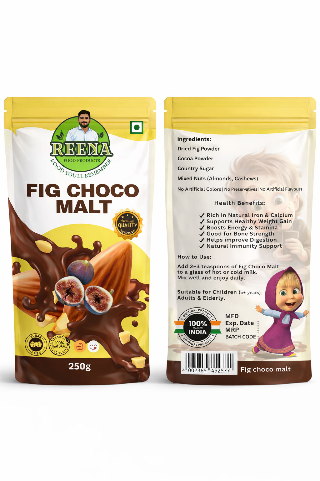 Reena Food Products Fig Choco Malt is a delicious and nutritious health drink made with the goodness of dried figs and rich cocoa. Carefully prepared with natural ingredients, this malt powder is perfect for children and adults who need energy, strength, and healthy weight support.